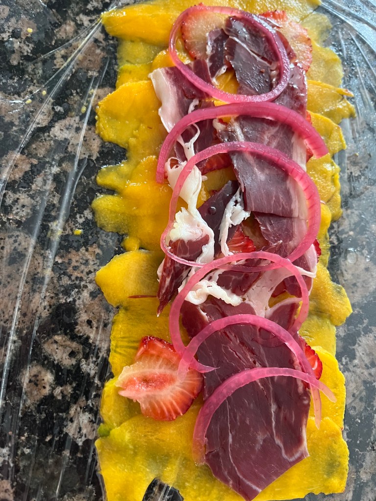 Now take 1/2 of the cubed salmon and cut down to almost a paste. You can do this in a food processor, but why take out a piece of equipment when a knife works just as well and is easier to clean! Besides, great stress reliever….. Add the lemon grass/ginger mix as you chop. You will. have this: