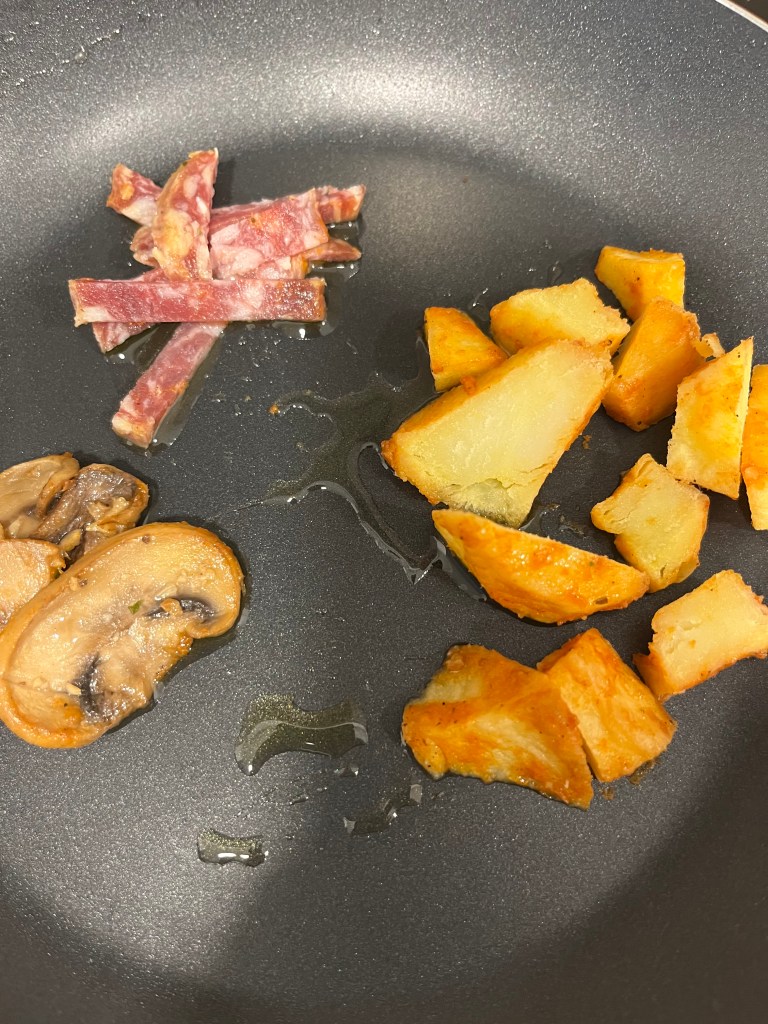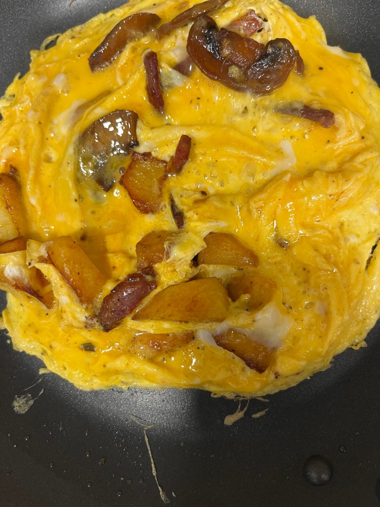 The best way to cook is to use a non-stick skillet but one was not available so I used cooking spray. Heat the skillet and then spray. Hot Pan Cold Oil. Good trick to remember to keep things from sticking. Learned that at a Chinese cooking class. (the actual quote is hot wok cold oil…).